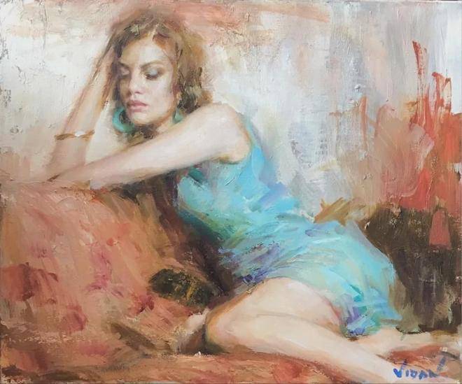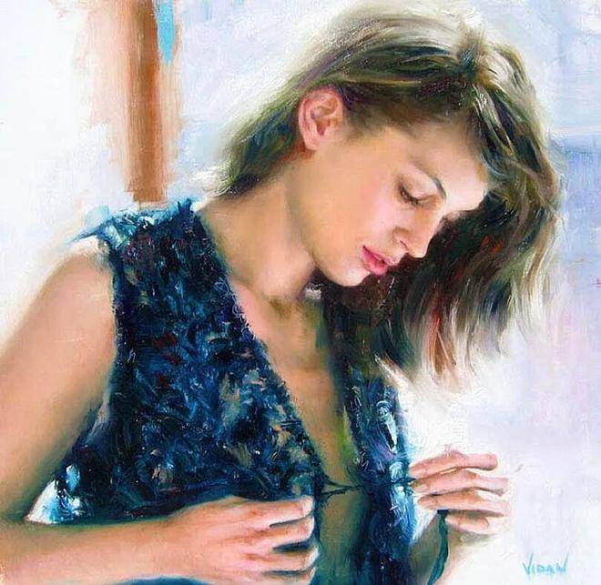 维丹的作品风格独具特色,他将写实与写意完美地结合在一起,创造出了一种既真实又富有诗意的艺术境界。在人物肖像创作方面,他展现出了非凡的才华和独特的视角。他尤其专注于对女性各种面孔的柔和、细致描绘,仿佛能够捕捉到女性内心深处最细腻的情感。在他的笔下,女性的面容不再是简单的形象再现,而是被赋予了生命和灵魂。他通过细腻的笔触和丰富的色彩,将女性的温柔、优雅、妩媚等特质展现得淋漓尽致。每一幅女性肖像作品都像是一首无声的诗,让观者在欣赏作品的同时,能够感受到女性独特的魅力和内心的世界。