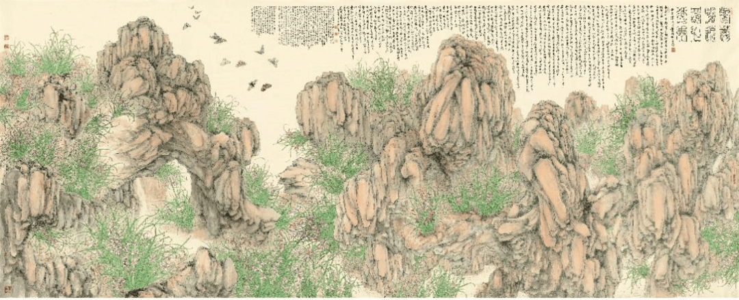 萧晖荣《兰惠香远 寿石延年》设色绢本 200cm×497cm 2020年作