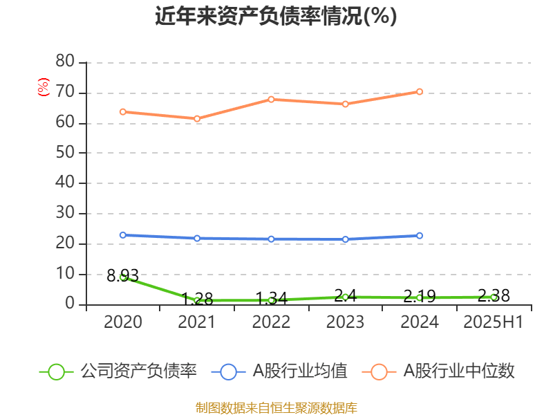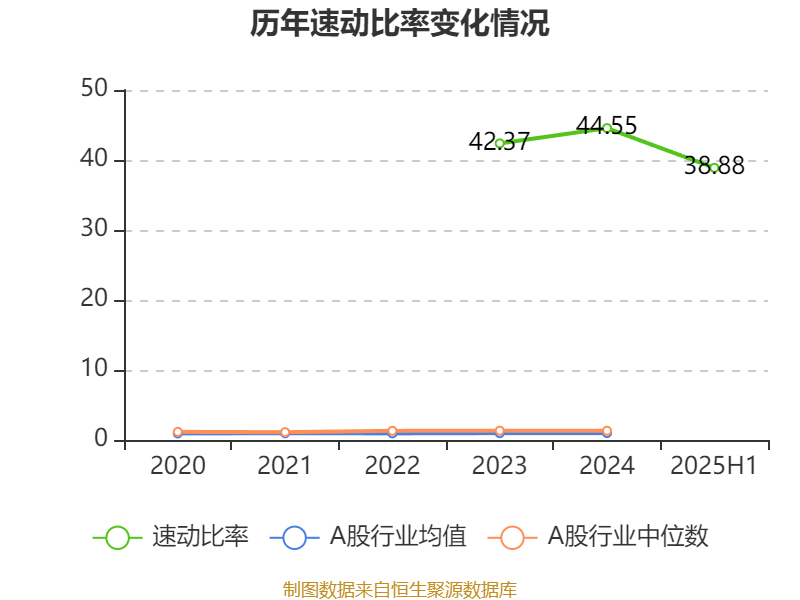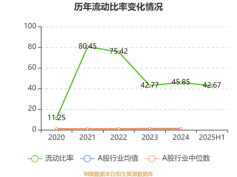 2025年上半年,公司流动比率为42.67,速动比率为38.88。