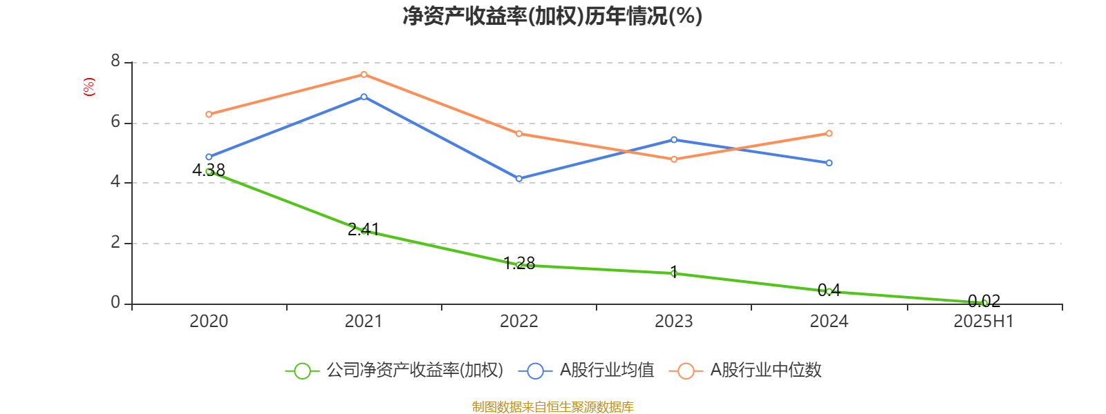 2025年上半年,公司平均净资产收益率为0.02%,较上年同期下降0.47个百分点。