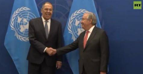 中新网9月26日电 据“今日俄罗斯”(RT)报道,当地时间9月25日,俄罗斯外长拉夫罗夫与联合国秘书长古特雷斯互相开起了玩笑。