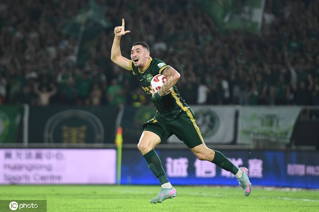 浙江后场断球反击,奥乌苏推进分球,米特里策直塞禁区,卡列洛身体优势抗开对方左脚抽射破门!打进绝平球。最终全场比赛结束,成都蓉城3-3浙江队。