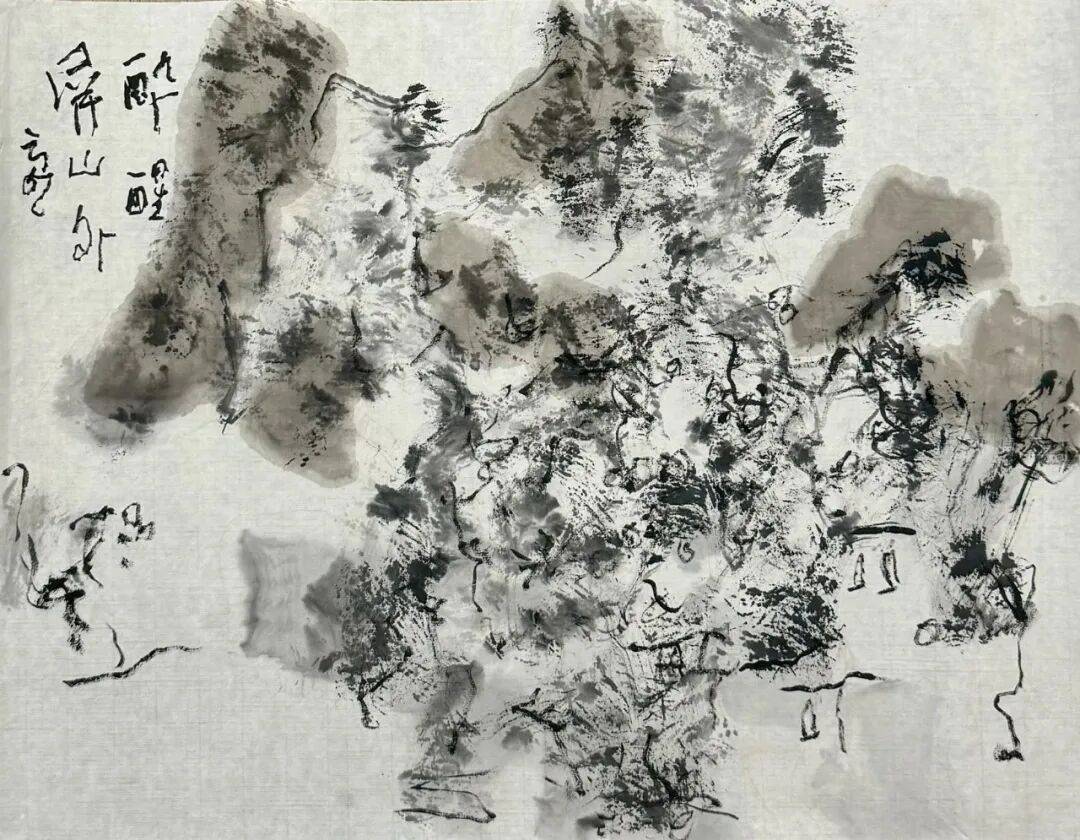 虽以书名世,先生丹青造诣亦深。早年习版画的黑白审美融入水墨创作,尤重“以书入画”——画竹则以书法笔意写竿,瘦劲挺拔;绘山水则以碑刻线条勾皴,骨格分明。其田园小品《锄园蔬果图》,寥寥数笔,墨色干湿浓淡间满是生活意趣;近年所作《巴山蜀水图》,多自写生而来,丛峦叠嶂中见章法,杂木荒烟里藏生机,有“樵夫耕者,出入画屏”之妙。书画同源在他笔下尽显:画中见书骨,书中含画境,恰合苏东坡“骨气深稳、精能之至反造疏淡”之旨。