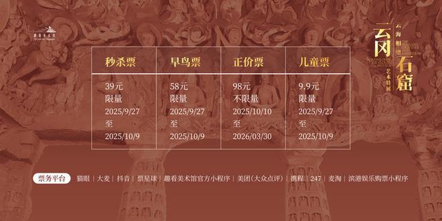 云冈石窟位于山西省大同市,是北魏时期开凿的大型石窟群,距今已有1500年之久。石窟依山开凿,东西绵延一公里,现存大小窟龛254个,主要洞窟45座,造像59000余尊。此次特展通过“户外+室内”双展区联动的创新模式,将云冈石窟文化遗产与数字科技、当代艺术结合,为上海文博市场注入新活力。
