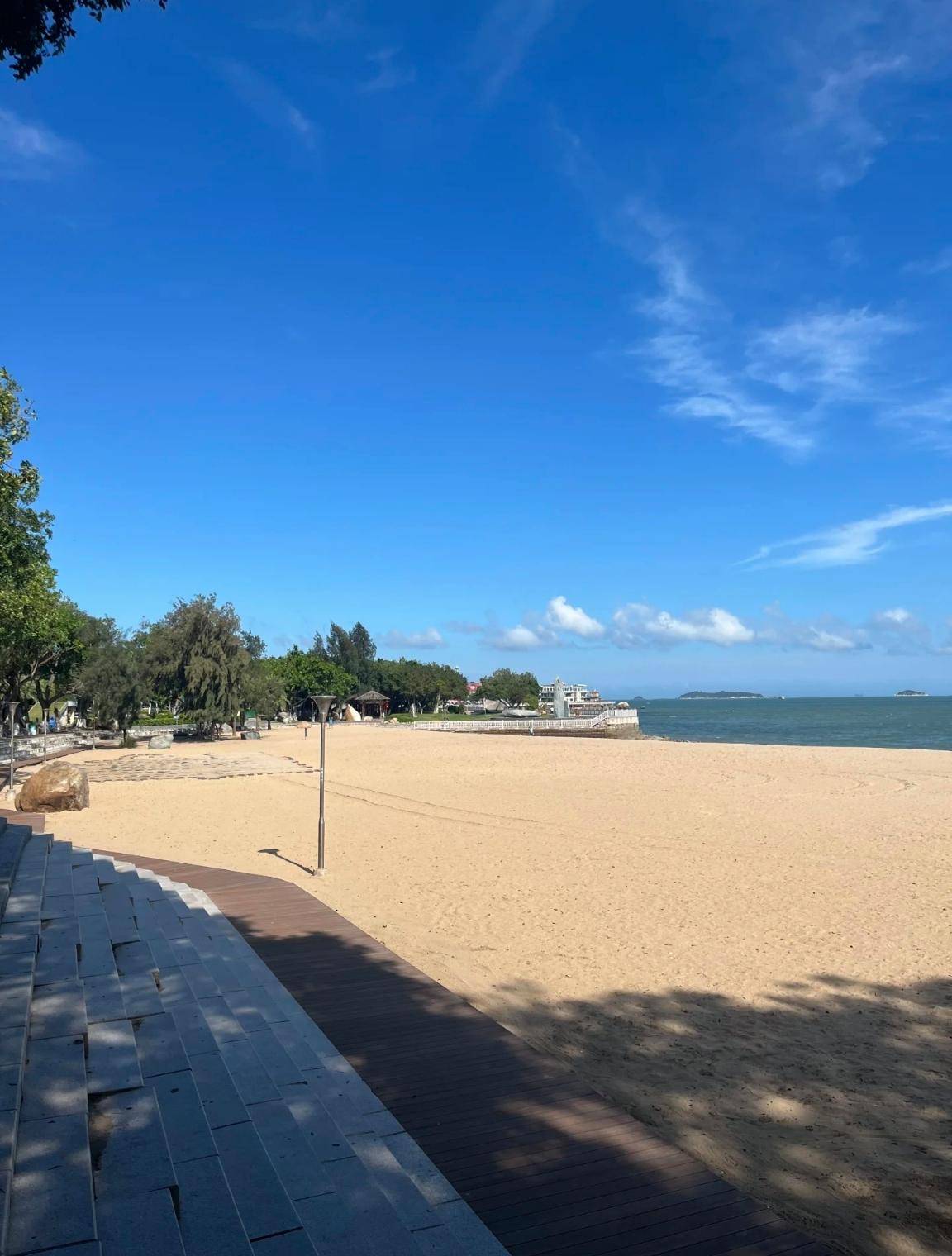此处沙软潮平,游客可执木枝于沙上临摹,体验“书海同辉”的意趣。