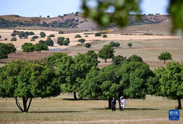 9月27日,游客在兴安盟科尔沁右翼中旗五角枫生态旅游景区游玩。