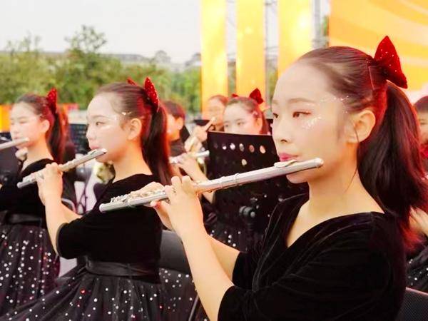 听觉艺术教育中,学校以“传统与现代并行、普及与精英并重”为原则,构建多元音乐教育体系。早晨8点整,当师生步入校园的时候,《彩云逐月》《梁祝》《我爱你,中国》等优美的曲子就准时响起,每天歌曲的内容不重样。早操前、午餐和放学时,师生们也能听到优美的旋律,可以“一饱耳福”。2018年成立的 “金色少年管乐团”,是学校听觉艺术的亮丽名片。乐团涵盖长笛、单簧管、萨克斯、小号等7种乐器,由安康学院的音乐专职教师担任指导专家,该校音乐教师负责日常训练和管理,每周开展4次基础训练和1 次合奏排练。2024年,在金州广场举行的汉滨区素质教育展示活动中,“金色少年管乐团”在舞台上率先登台演奏,充分展现新时代少年的靓丽风采。该社团曾赴省、市、区参加比赛,获得多项大奖。