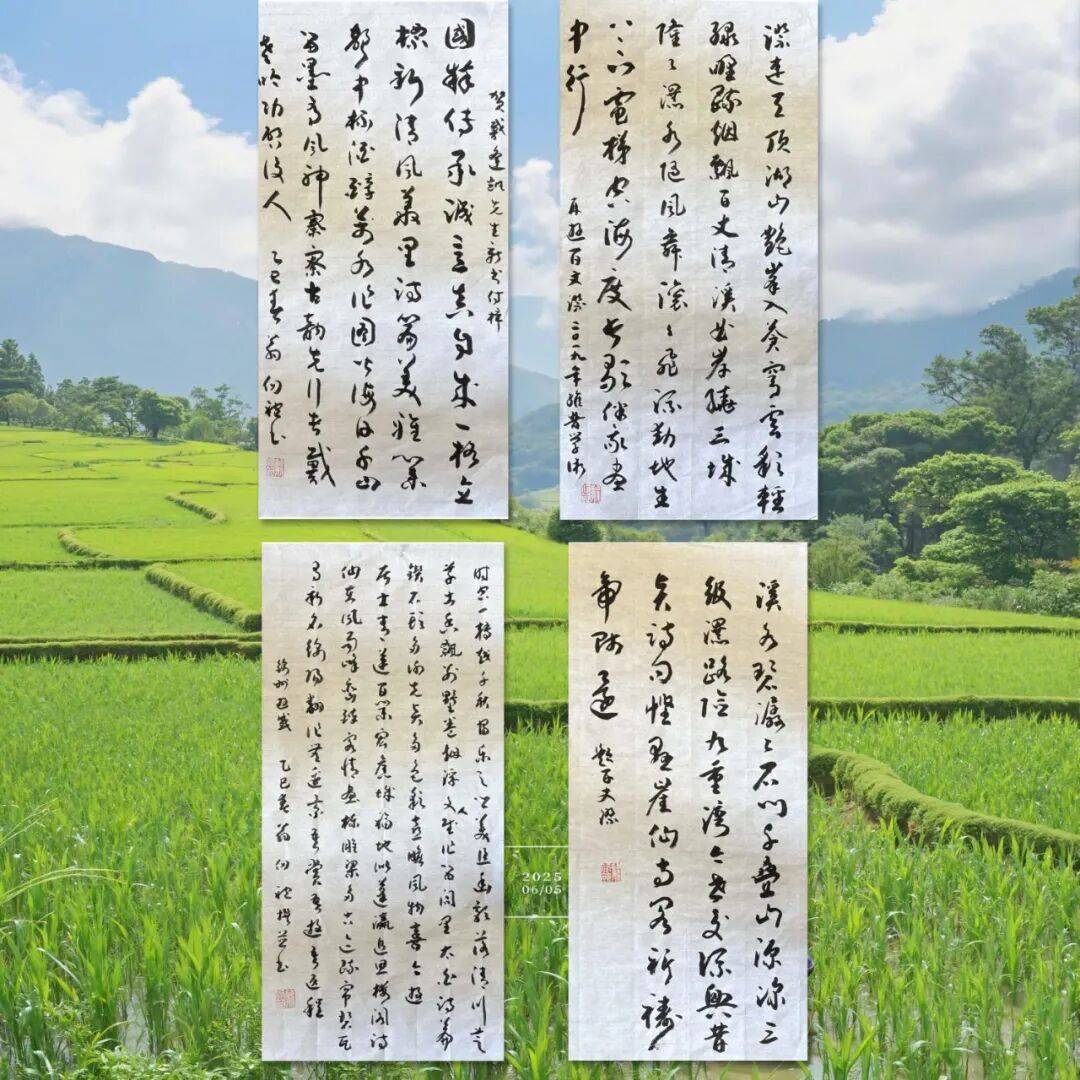 在翁先生的诗书法作品中,笔墨随着诗意的起伏而变化。当书写描绘高山大川的诗句时,笔力雄健,气势磅礴,仿佛将山川的雄浑壮阔展现在观者眼前;而书写表现溪流幽泉的诗句时,笔调则变得灵动飘逸,清新雅致,让人体会到自然的静谧之美。字里行间,流露出他对大自然的深情赞美与向往。同时,他的书法也承载着对传统文化的敬畏与传承之情。每一次挥毫,都是与古人的对话,与经典的交流。在笔墨的流淌中,传递出中华文化的精神内核,让观者在欣赏书法艺术的同时,感受到传统文化的博大精深与无穷魅力。