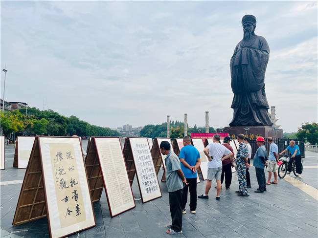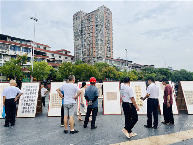 今日永州讯(通讯员 李胜全 王建文 田赤英)9月29日,为纪念中国人民抗日战争暨世界反法西斯战争胜利80周年,由道县总工会、县文旅广体局主办,县文化馆承办,县书法家协会协办的“铭记历史 · 开创未来”书法作品展在周敦颐文化广场举行。