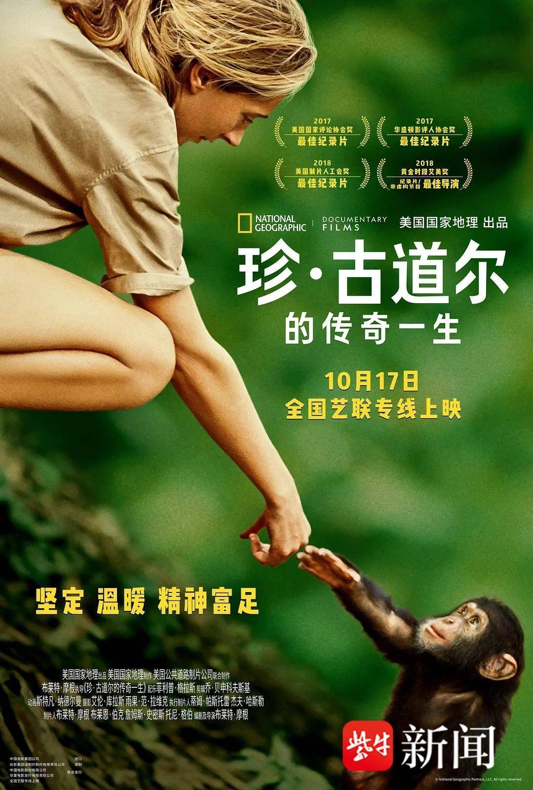 2017年上映的纪录片《珍·古道尔的传奇一生》是了解古道尔人生和动物、环境保护理念的全景式纪录片,导演布莱特·摩根尤其擅长人物刻画,他从100多个小时从未公布过的珍·古道尔在野外考察和访谈的影像资料中选材剪辑,以第一人称视角,讲述了珍·古道尔年轻时在非洲研究黑猩猩的故事。伴随菲利普·格拉斯的迷人配乐,让观众感受到在那个仍由男性主导野外科研的年代,一个女人如何通过激情、奉献和毅力改变世界。影片还把人类的命运与动物交织在一起,大大强化了人与自然的关系。这部纪录片获得第30届芝加哥影评人协会奖、第71届英国电影学院奖最佳纪录片提名。