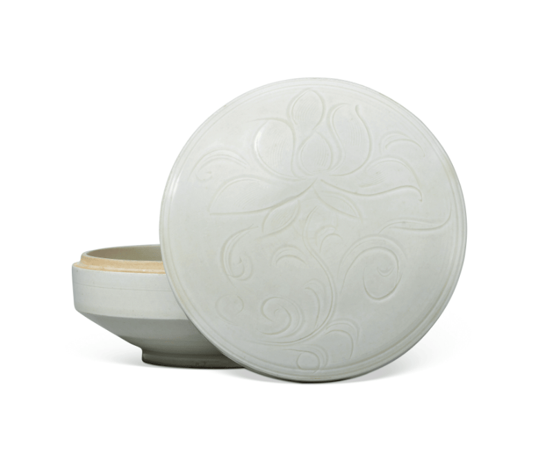 定窑白釉刻划萱草纹盖盒成交价格216万港币 嘉德