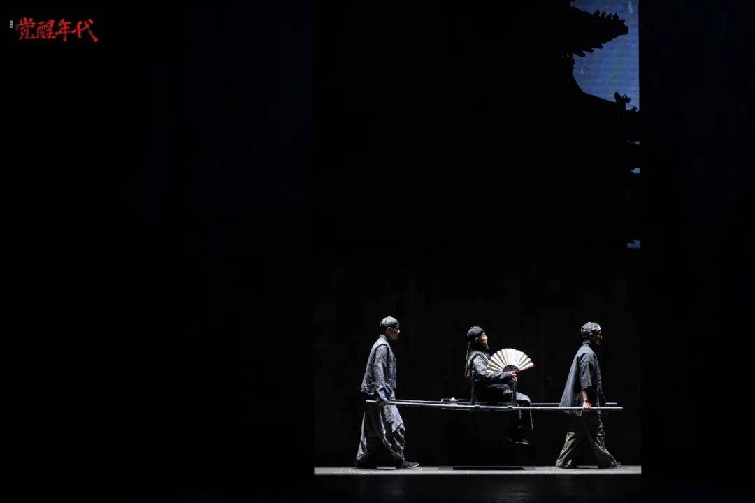 演员们的服装造型都经过严谨的历史考证,造型力求贴近历史人物原型,服装量身定制、极具年代感,呈现出历经岁月洗礼的独特质感,让观众仿佛能触摸到那个年代的纹理。剧中的原创音乐时而荡气回肠,时而又温馨感人,为这部剧注入了震撼人心的艺术感染力。灯光着重体现出历史厚重,再辅以多媒体渲染时代氛围,在力求真实的基础上,提炼出精神意境。提灯、火苗等元素的运用,在黑暗中显得尤其明亮,一束束光直达内心。墙面转动、影像交叠,再与灯光相辅相成形成了一种特别的质感。“虚实结合”成为塑造历史氛围和情感张力的重要手法,舞美团队运用现代设计与手段再现历史情节,更增强了话剧《觉醒年代》的强烈戏剧张力。