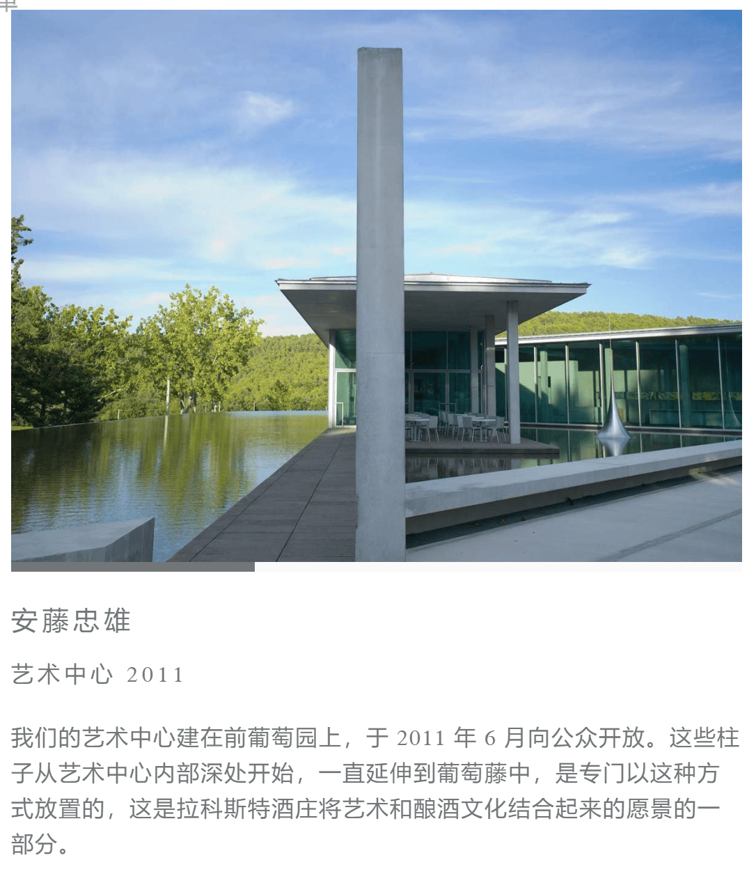 除了安藤忠雄的作品,酒庄内还有让・努维尔设计的酒窖,以及弗兰克・盖瑞、伦佐・皮亚诺、理查德・罗杰斯、奥斯卡・尼迈耶等全球知名建筑师设计的餐厅、展厅、户外表演厅等。稍有建筑知识的人都知道,这些建筑师均曾斩获有 “建筑界诺贝尔” 之称的普立兹克奖,能在一座酒庄内集齐他们的作品,实属罕见。