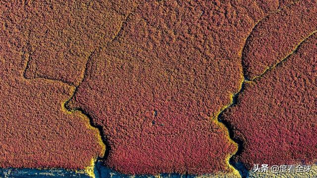 每年四月,当北方的春天还带着一丝凉意,碱蓬草的种子便在湿润的卤渍中悄然萌芽,起初是嫩绿色的细芽,不起眼地贴着地面生长,仿佛在积蓄力量。历经整个春夏的沉淀,它慢慢汲取土壤中的盐分,将有害物质转化为自身生长的养分,叶片也逐渐从嫩绿变为浅红,再到深紫,直到九月末至十月,终于绽放出带紫晕的浓烈红色,迎来一年中最绚烂的观赏期。