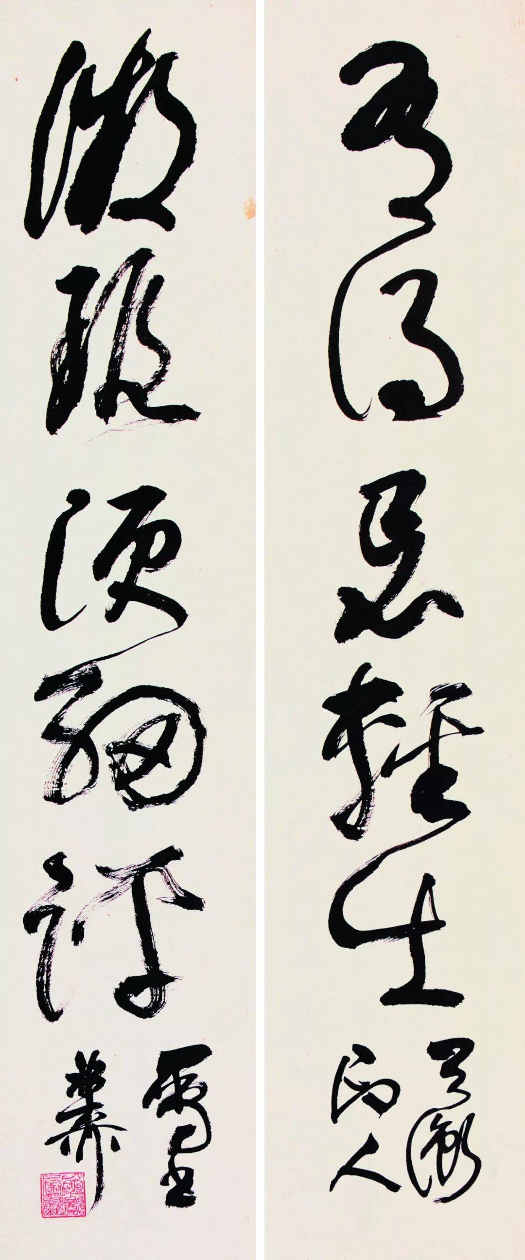 谢稚柳 草书《能追始见》五言联