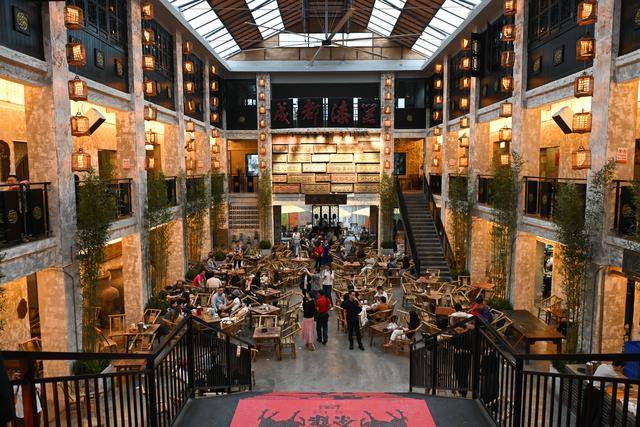 走进位于宽窄巷子附近的大旗茶馆,青砖灰瓦、木质格窗的川西传统民居风格扑面而来。设计者巧妙地将老厂房的工业骨架与竹椅、盖碗茶、露天庭院等川式休闲元素相融合。斑驳的墙面与精致的漆器纹样相映成趣,既保留了旧时光的印记,又注入了现代审美活力。