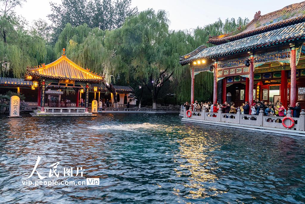 2025年10月13日,山东济南,连续降雨致趵突泉地下水位飙升,出现“趵突腾空”胜景,吸引全国各地游客前来参观。王章华摄(人民图片网)
