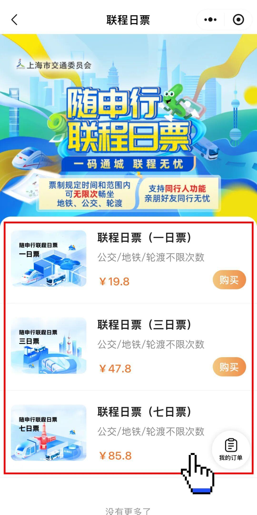 同时,对于单日交通换乘累计费用超过19.8元的乘客,还可以选择购买以下三种“联程日票”:19.8元一日票、47.8元三日票、85.8元七日票。可免费在票制规定时间和范围内无限次畅坐地铁、公交、轮渡。