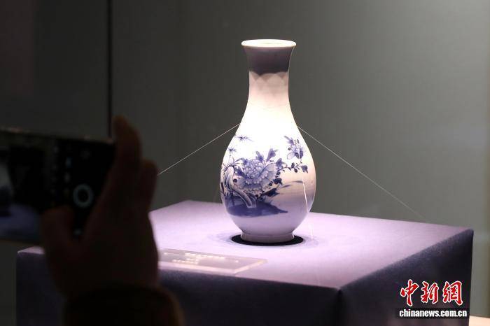 10月17日,陕西西安,游客参观青花花卉纹净瓶。近日,文物特展《碗礁瓷语——碧波启封的丝路时光舱》在西安博物院开展。该展览以清代康熙年间沉没于福建平潭海域的“碗礁一号”沉船出水瓷器为核心,汇集115件组珍贵文物,再现了海上丝绸之路的贸易盛况与文化交融。中新社记者 张远 摄