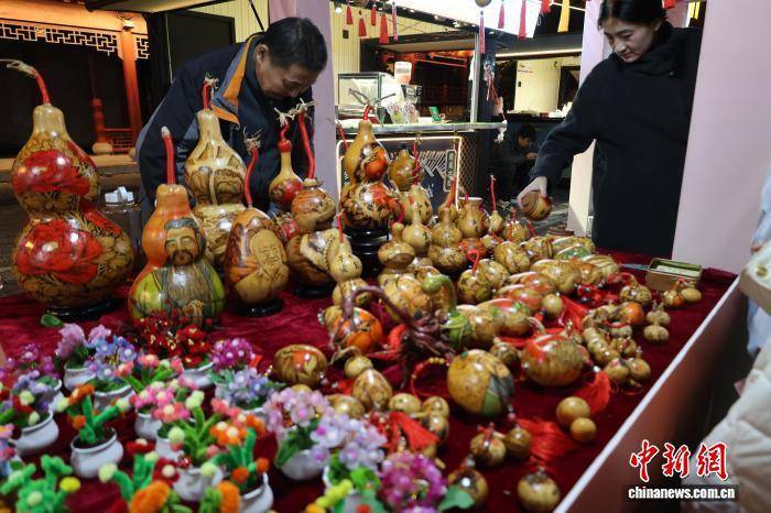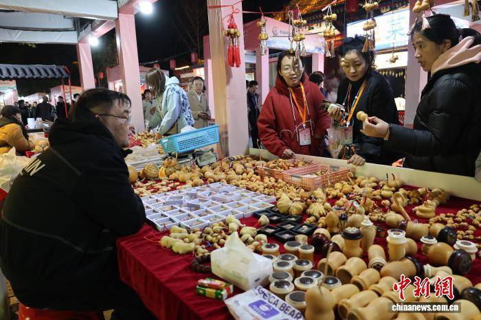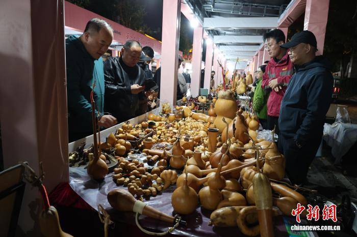 10月18日晚,山东聊城,民众在选购葫芦工艺品。当日,第十七届江北水城•两河明珠(聊城)葫芦文化艺术节在聊城市中华水上古城拉开序幕。孙婷婷 摄