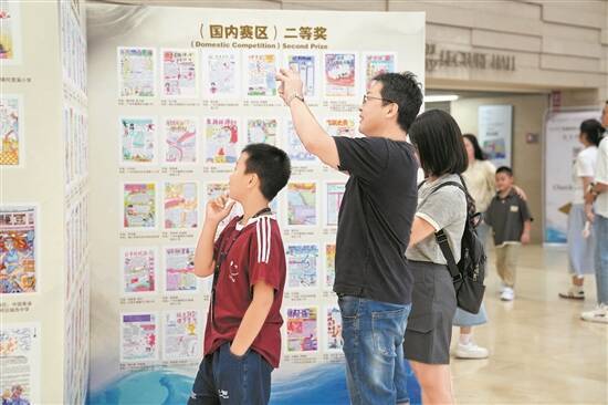 大人和小孩在欣赏获奖作品 羊城晚报记者 黄城栋 李论 摄 |