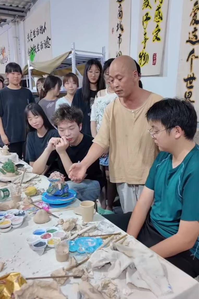 大师示范完,学生们跃跃欲试,拿出在学校设计好的图形,投入创作中。“大师,这里捏不上去?”“大师,帮我看看这样做对吗?”……学生们积极与大师互动,每天连续创作几个小时。