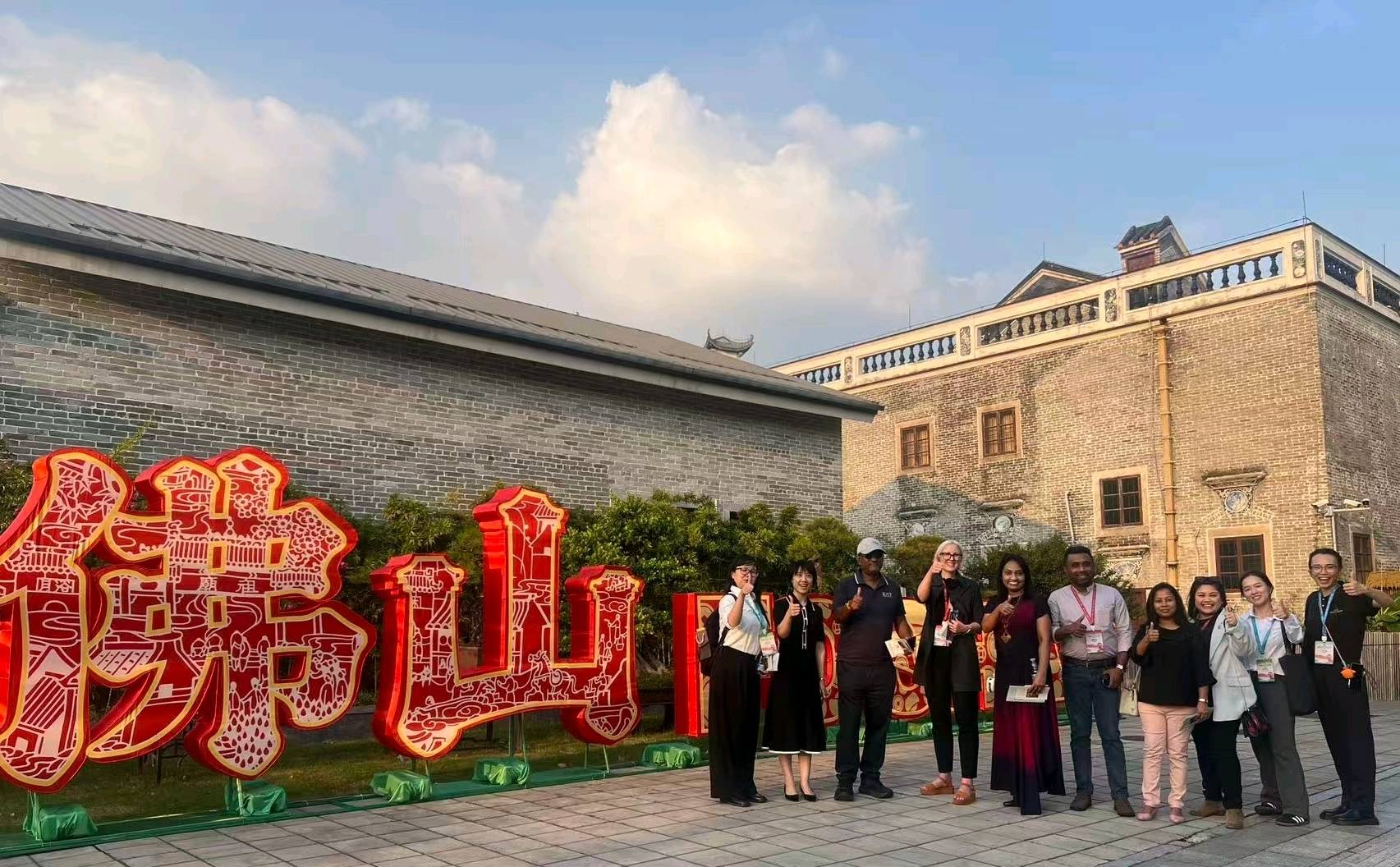 剪纸造型的“佛山FoShan”二字,成为各国代表团定格佛山记忆的经典背景