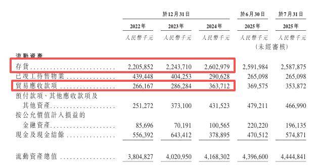 2022年至2024年,公司的存货分别为22.06亿元、22.44亿元、26.03亿元;应收账款也从2022年的2.66亿元增加到了2024年的3.64亿元。