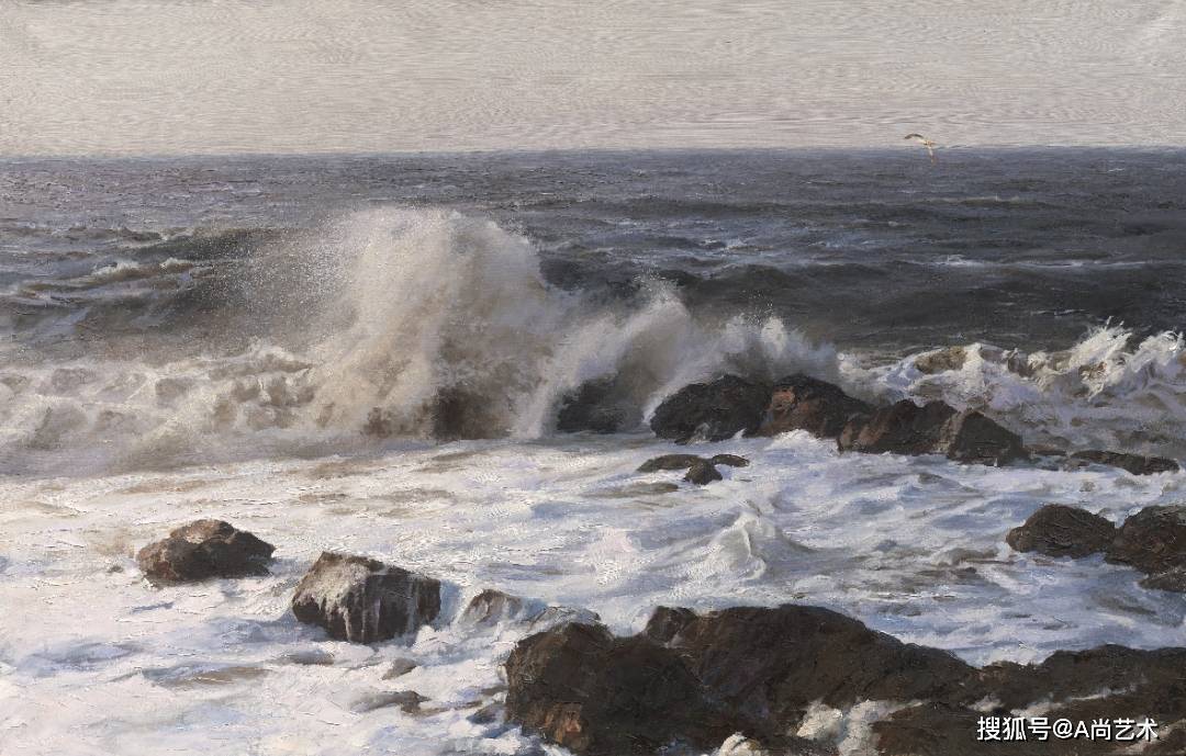 于普杰以海景题材为核心,擅长通过厚重的笔触与动态构图表现海洋的瞬息万变,代表作《海唱》《雪浪花》等多次在国内外展览中获奖 。其创作强调对自然真实的捕捉,兼具写实性与象征性 。