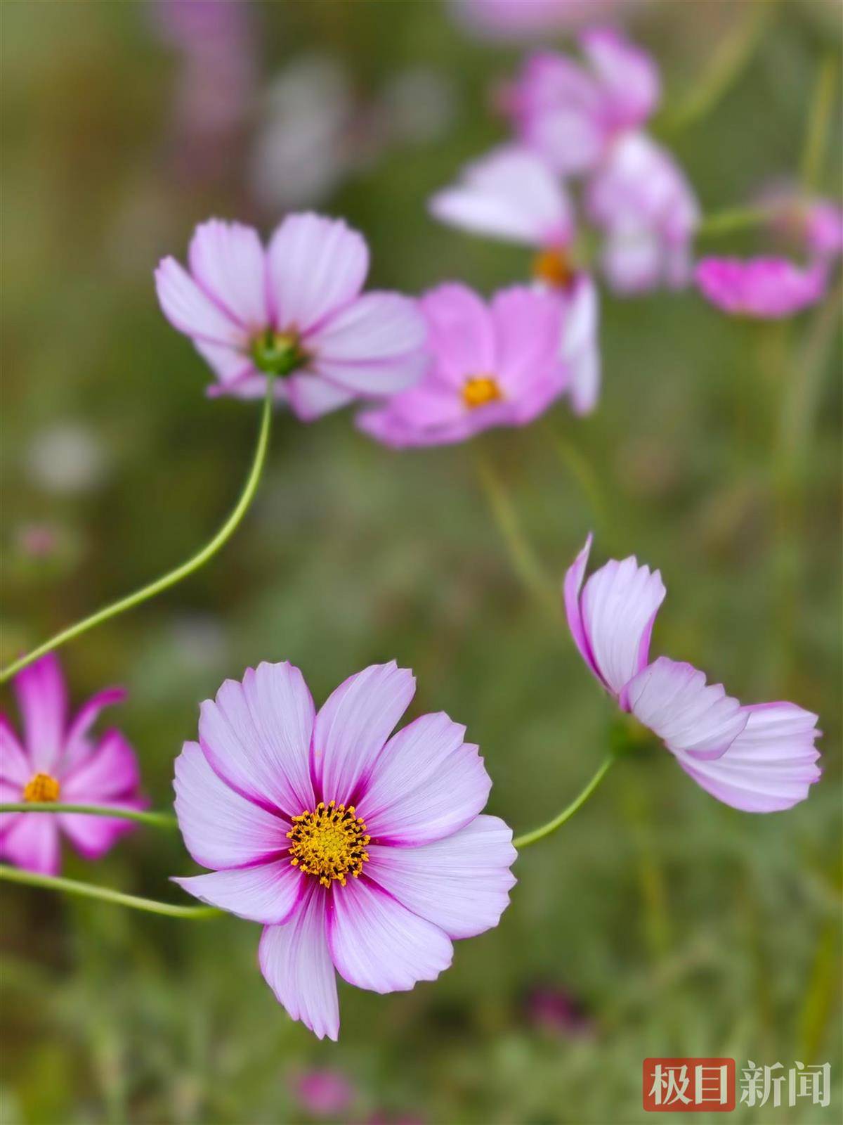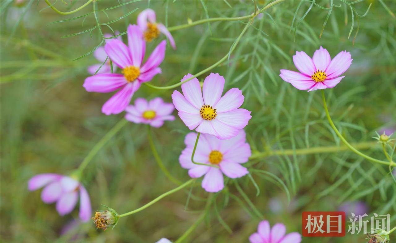 10月21日,武汉市江夏中央大公园内格桑花惊艳绽放。五颜六色的格桑花唯美梦幻。极目新闻记者在现场看到,这里的格桑花主要分为玫红色、粉色、白色三大区域。深浅层叠、浓淡相宜的花田铺满大地,给公园增色添彩。
