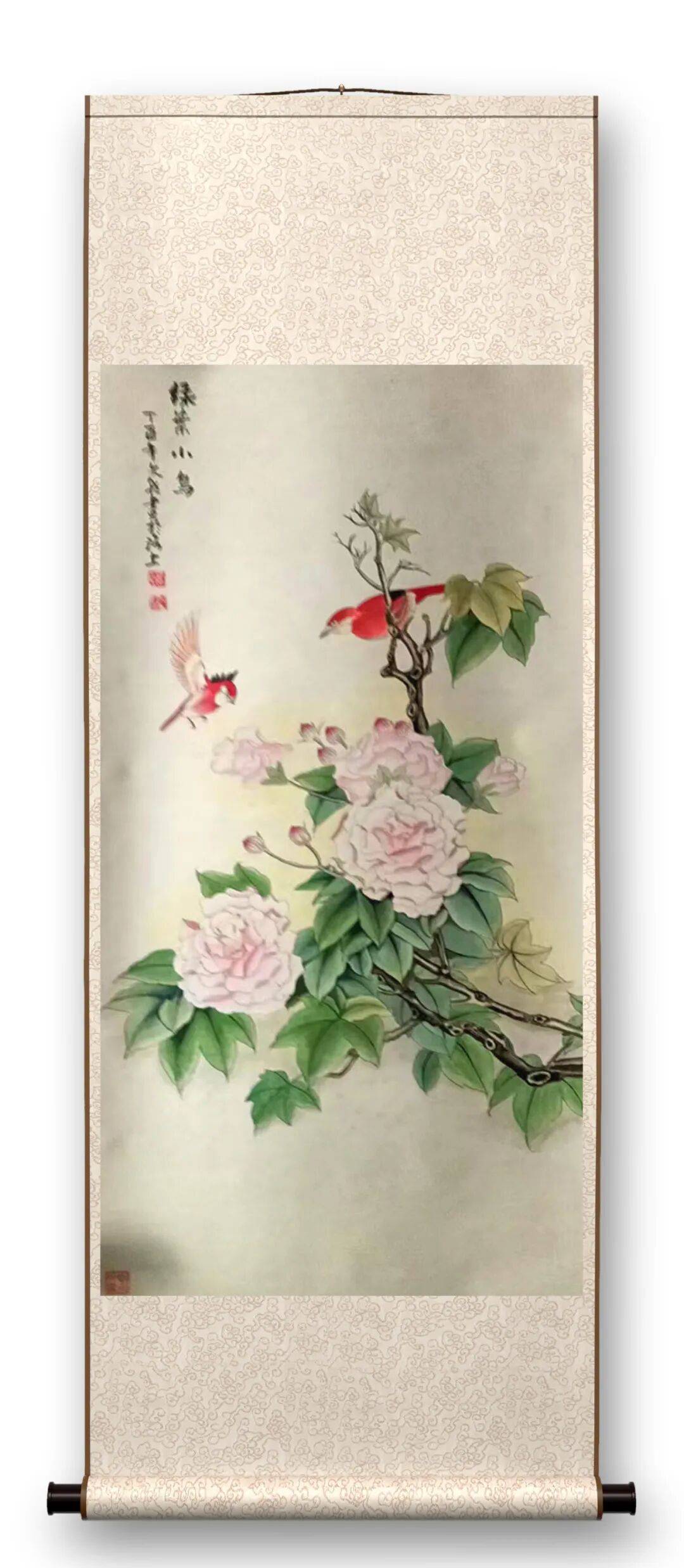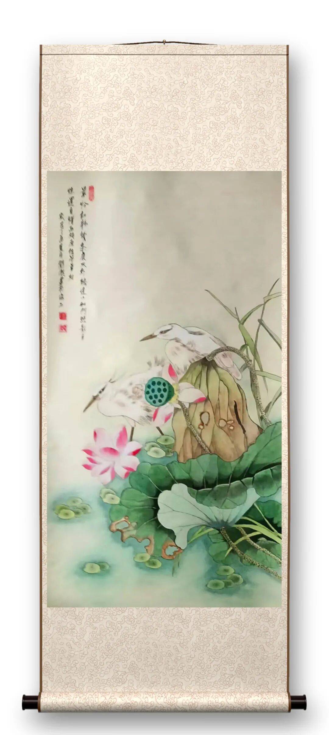 除牡丹外,刘文朝先生对荷叶的描绘,更是水墨技法的创新典范。他笔下的荷花,千姿百态,韵味充沛。浓墨泼就的荷叶,苍郁凝重,墨色氤氲;一支支优雅挺秀的白荷或红荷点缀其间,再配上一只迷人的幽鸟,整幅作品便飘逸出一种追魂摄魄的美感。传统画家遵循 “笔墨之理同于生理”,以主脉为纲,向四周分披运笔,而先生却另辟蹊径,打破常规,让纵笔挥洒的轨迹与大叶脉线神形契合,在奔放的笔触中放射出叶筋。这般突破,既让荷叶兼具磅礴气势与丰富层次,更展现了他独特的艺术视角,赋予荷叶新的生命与韵味,成为其画作极具辨识度的标志性特色。