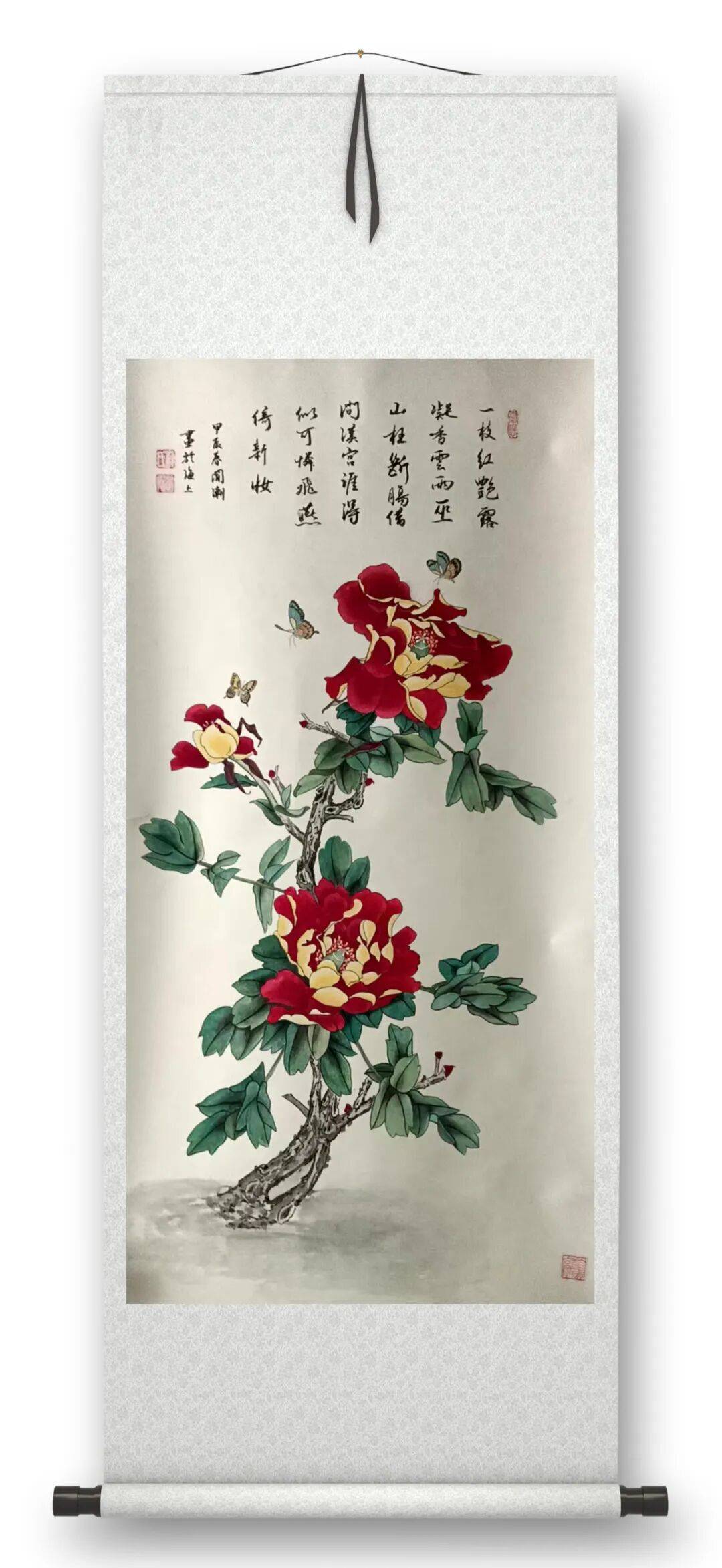 墨染牡丹抒赤志 笔绘荷韵展新姿