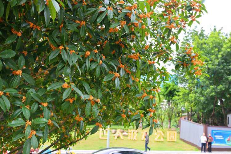 最近,重庆的桂花正开得热闹,香气满城。江北区江北嘴中央公园的桂花街上,花香尤其浓郁。