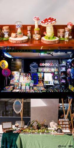 此外,第二届设计公社艺术生活周“什么玩艺”市集也由设计公社与COOBBY共同举办,本届市集以“灵感实验室”为主题,吸引了30余位青年创作者,集中展示潮玩周边、手工饰品、书法绘画等文创精品。在10月17日至18日两天内,市集吸引了逾千名顾客驻足流连,成为创意交流与同好结识的活跃平台。10月18日举办的“自然与设计”主题手工坊,则通过指导参与者将旧衣物改造为布艺花朵,生动传递了绿色循环的生态设计理念。