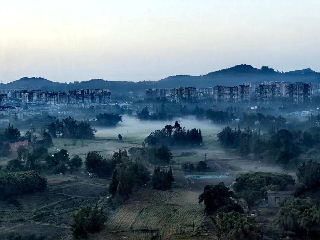 一组充满生机的窗外景致: 从住院部16楼远眺,远处西岭雪山的轮廓在阳光下清晰可见,展现出“窗含西岭千秋雪”的独特魅力;楼下是颗粒归仓的丰收景象,大地色的画卷洋溢着生命的饱满;晨曦之中,仙雾缭绕于城市之间,宛如一幅绝美的水墨丹青。