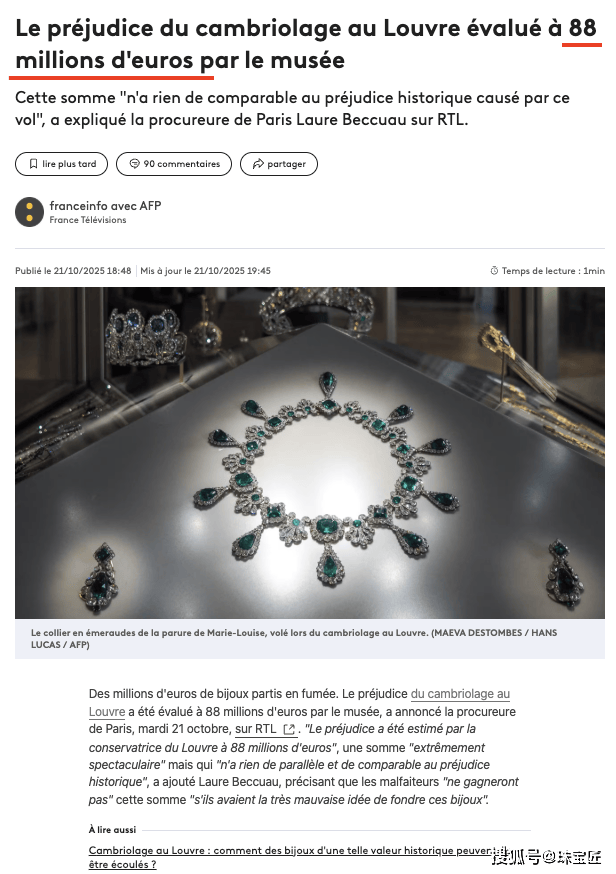 关于本次被盗珠宝的详细介绍,我们在前篇(相关阅读:)已经为大家说过了,这边就不再赘述。今天只聊一聊,这8800万欧元,是怎么算出来的?