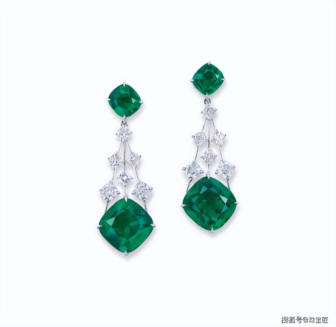 目前市面上能找到的最接近祖母绿耳环的同类拍品——祖母绿钻石耳环于佳士得2015年拍卖出1252万港元(约合人民币1148万)的价格。