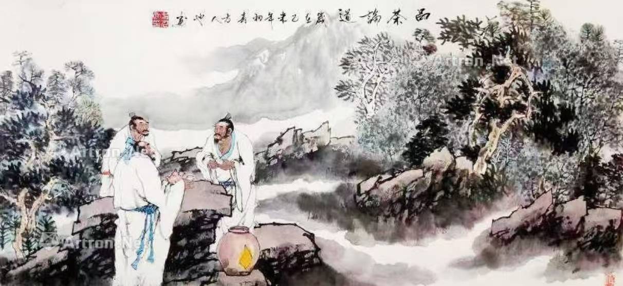 方人也善于从古代诗词、历史故事中汲取灵感,通过神话人物与象征符号,引导观众思考信仰的力量。在《思念》中,他以神话中的月宫仙子为原型,通过飘逸的衣带与朦胧的月光,营造出超脱尘世的意境;而在《品茶论道》中,茶具与古籍的组合传递出对传统文化的坚守,茶桌与远山形成“微观日常”与“宏观宇宙”的对话,暗含道家“天人合一”的哲思。