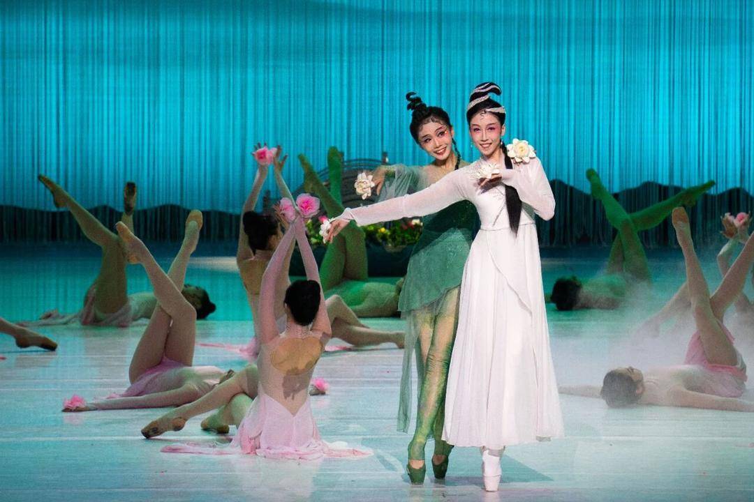 在角色塑造上,舞者的动作设计兼顾了芭蕾的规范性与东方文化的象征性。白蛇的舞蹈以芭蕾的阿拉贝斯克、古典舞步等动作为基础,融入了中国古典舞“圆场步”的轻盈与“水袖”的柔美——当她与许仙共舞时,足尖的轻盈跳跃搭配手臂的缓慢舒展,既展现了芭蕾的优雅,又传递出东方女性的温婉;而青蛇的舞蹈则更具张力,舞者以芭蕾的跳跃动作结合中国民间舞“俏花旦”的灵动,足尖快速点地的同时配合头部的敏捷转动,将青蛇“活泼率真”的性格刻画得入木三分。这种“中西融合”的动作设计,让芭蕾这一西方艺术形式,成为表达东方人物情感的精准载体。