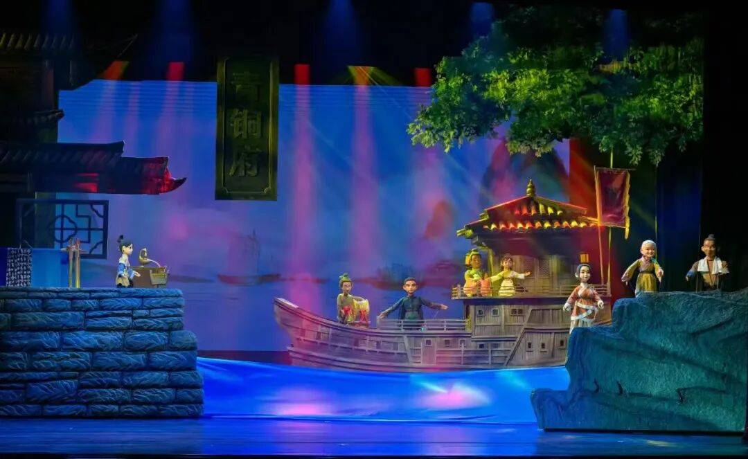 木偶剧《国宝故事——铜凤灯》是广西艺术基金2024年度大中型舞台剧和作品资助项目,讲述了博物馆小志愿者聪仔无意中激活铜凤灯里的小凤凰小七,随后两人穿越到汉代合浦港,沿着海上丝绸之路历经千难万险寻找失踪铜凤灯,最终将国宝带回家的故事。剧中融合了杖头木偶、铁枝偶、手偶等多种木偶种类的表演,既展现了汉代海上丝绸之路的壮丽画卷,又表现了中华优秀传统文化的绚丽光彩。()