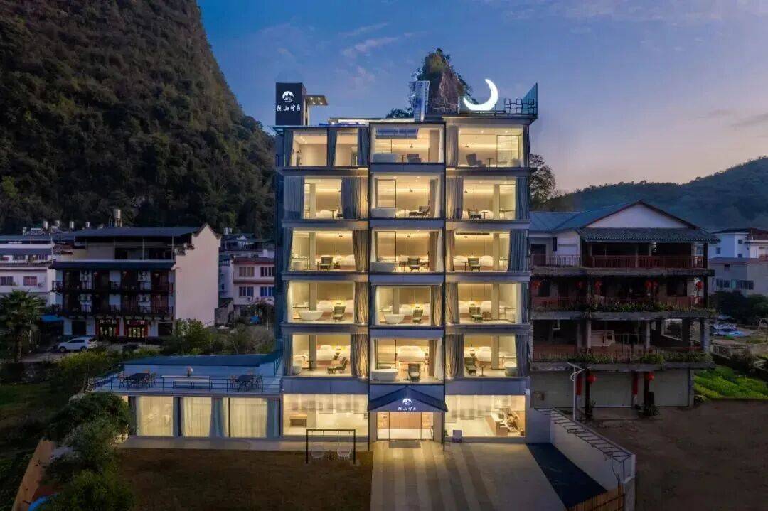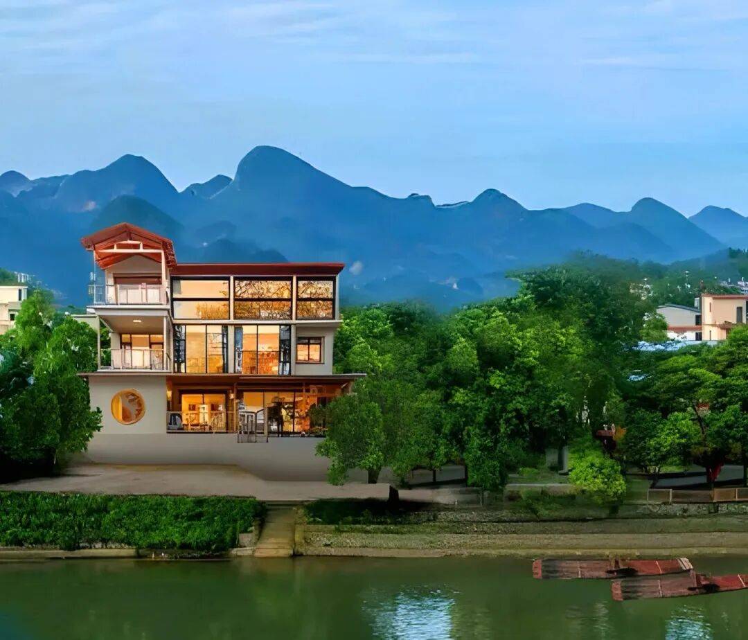 这里被称为隐匿在漓江边的日落民宿,位于七星区朝阳乡龙门村。住在此处仿佛直接住进山水里,不管是门庭的绿水青山,还是后方的禅意园林小院,都能感受到民宿的清新古典韵味。