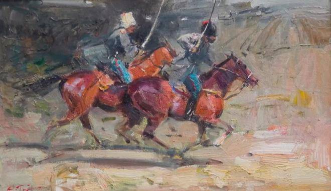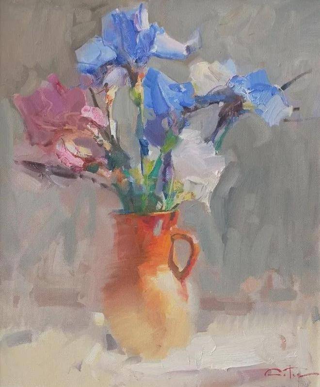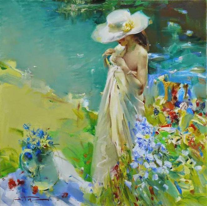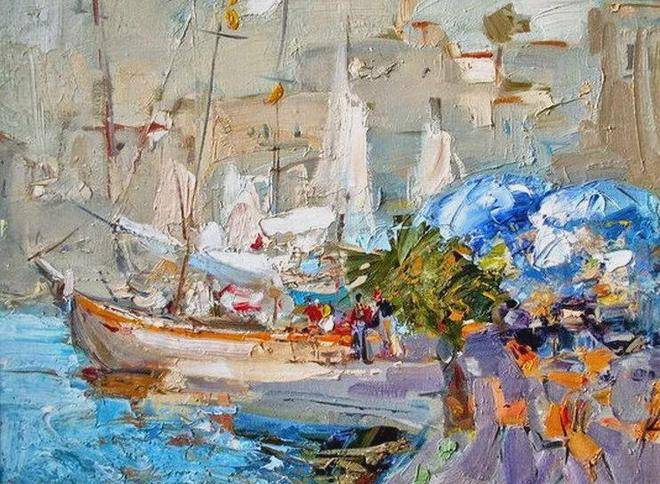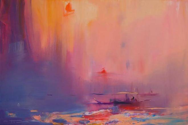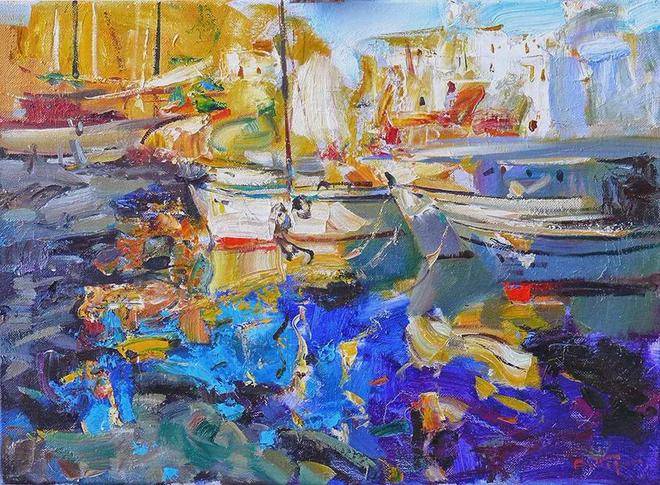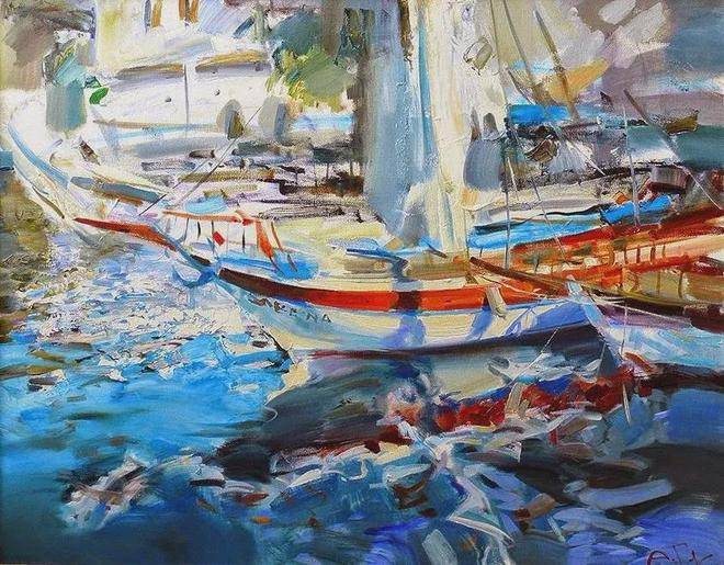 戈尔比科夫的油画作品,犹如一首首优美的诗篇,在画布上徐徐展开。其笔触轻盈、流畅且明快,仿佛是灵动的音符在跳跃。当观者凝视他的画作时,能真切感受到那股自由奔放的气息。他大胆地运用色块,那些色彩并非是简单的堆砌,而是经过精心构思与巧妙搭配,如同色彩的交响乐,奏响出独特的旋律。流动的笔触,让画面充满了动态感,仿佛每一笔都蕴含着生命的力量,在画布上肆意舞动。