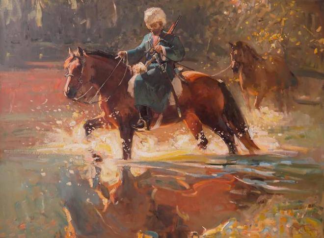在细腻刻画与模糊影像之间,戈尔比科夫找到了完美的平衡。他既能以精湛的技艺对细节进行细腻入微的描绘,使画面中的每一个元素都栩栩如生;又能巧妙地运用模糊的手法,营造出一种如梦如幻的氛围,让观者的想象力得以自由驰骋。而准确的造型,则保证了画面在具有艺术感染力的同时,不失其真实性与稳定性。这种将传统与现代完美融合的艺术风格,在他的画面中和谐统一,既保留了传统俄罗斯油画那种浓郁醇厚的韵味,又融入了现代艺术的创新与活力,使作品在具有深厚历史底蕴的同时,展现出鲜明的时代特征。
