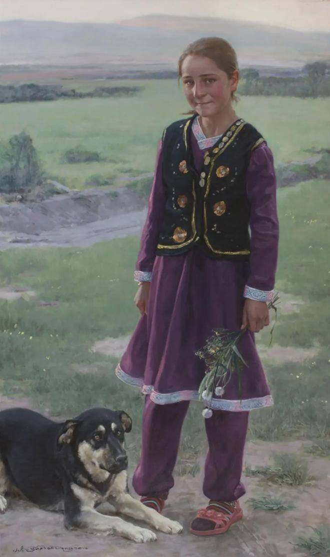 ▲《夏热瓦纳和她的狗》 2014年 90X150cm