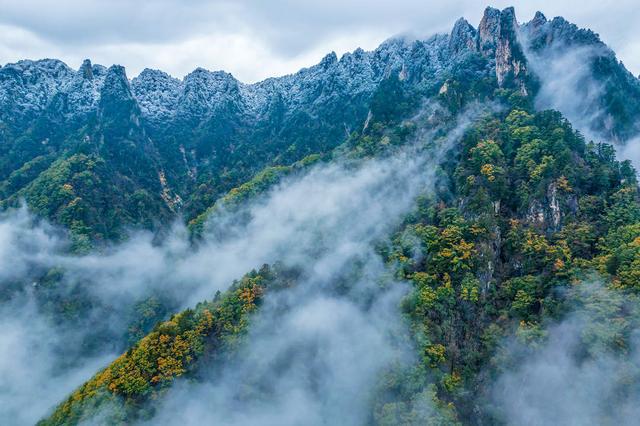 10月21日,受冷空气影响,位于河南平顶山鲁山县的尧山景区现冰挂雾凇奇观。斑斓秋色在冰雪里熠熠生辉,云海于峰峦间悠悠翻涌,诸景相融,尽展尧山灵秀与壮美,引游人沉醉其间。(何进文)