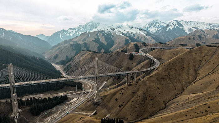 14日,写生团一行穿越“新疆第一桥”果子沟大桥。大桥横跨峡谷,与远山雪峰、层峦叠翠相映成趣,构成一幅气势恢宏的画卷。老圃深有感触地说:“越过山脊进入伊犁,满目葱翠扑面而来。特别是那片天蓝色建筑群,宛若将整个村庄浸润在湛蓝海水之中,如此独特的视觉体验,促使我必须探索新的艺术表现手法。"