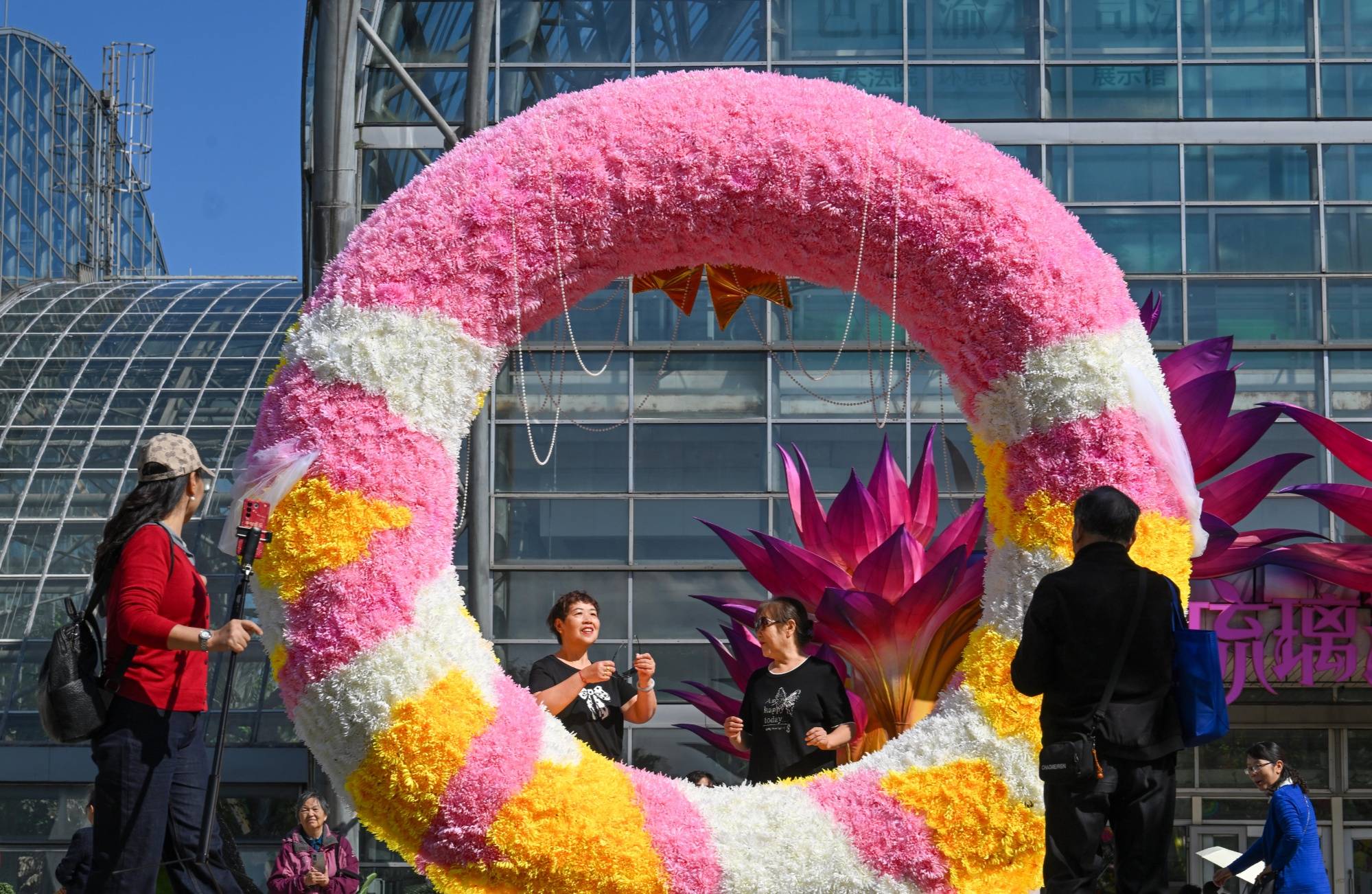 ▲2025年10月23日,南山植物园,游客在“花花甜甜圈”处拍照留影。记者 张锦辉 摄/视觉重庆