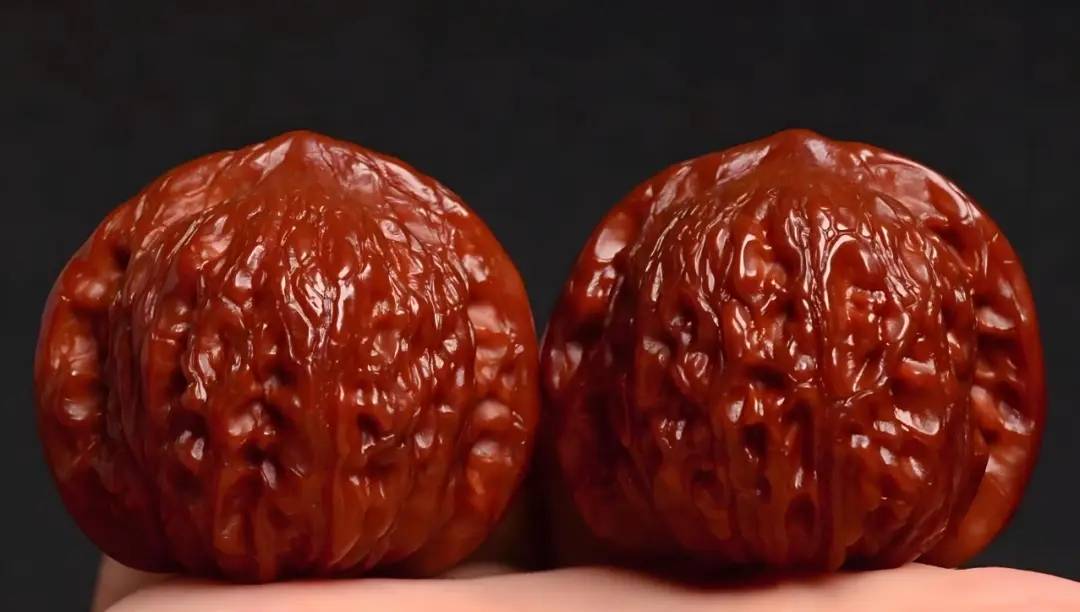 文玩核桃历经岁月盘玩,由青涩生硬逐渐转为红润透亮,最终达到“玉化”境界——通体如玛瑙般晶莹,纹理似流水般蜿蜒,堪称玩家心血的结晶。然而,正因其美得极致,也变得格外脆弱。玉化后的核桃,木质结构因长期油脂渗透与氧化已趋于“瓷化”,质地虽润,却失韧性,变得异常酥脆。此时若稍有不慎