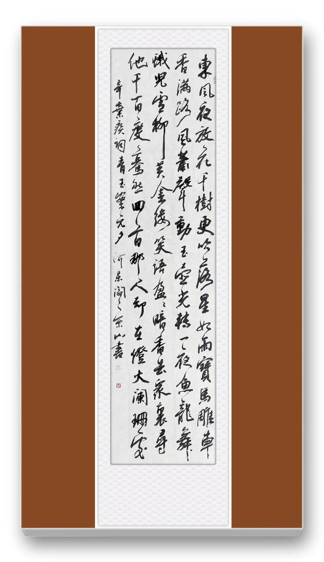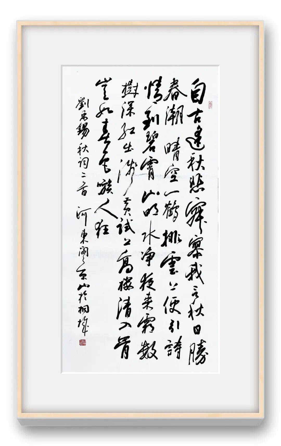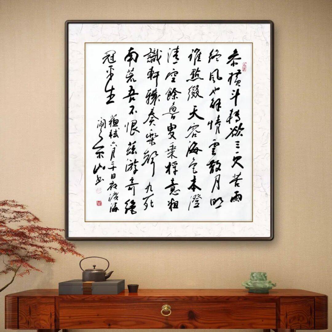在行草书的创作中,他将早年习得的帖学灵动与后来融入的碑学骨力完美融合,近年更追求以籀篆笔意入行草,使得其行草作品既具线条的凝练厚重,又有笔墨的灵动洒脱。观其行草作品,笔画提按顿挫有致,线条如“万岁枯藤”,苍劲而富有弹性;结体欹正相生,章法疏密得当,于飘逸中见豪放,于洒脱中显大气。他的行草,不是对古人的简单模仿,而是在深入理解传统后,融入自身性情的个性化表达,既有传统文人的书卷气,又有当代书家的时代感,淋漓痛快的笔墨中,传递出强烈的艺术感染力。