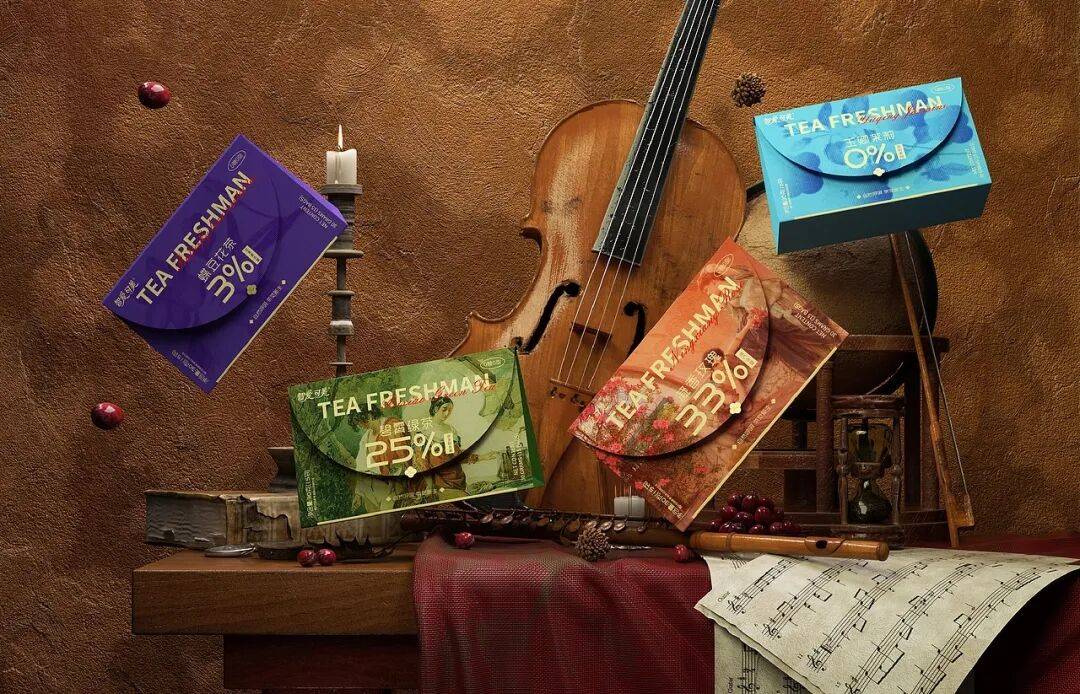 这款系列茶叶包装,走的是复古艺术风。包装上运用了类似古典油画的图案,人物与风景的描绘充满艺术感,不同颜色的包装对应不同的茶品。同时,包装上标注的 “33%”“25%” 等比例数字,增添了一丝现代感与神秘感,引发消费者的好奇心,想探究这些数字与茶叶的关联。整体设计将古典艺术与现代元素结合,营造出一种典雅又时尚的氛围,让茶叶包装如同一件精致的艺术品,不仅能很好地展示茶品特色,也能满足消费者对美学与文化内涵的追求。